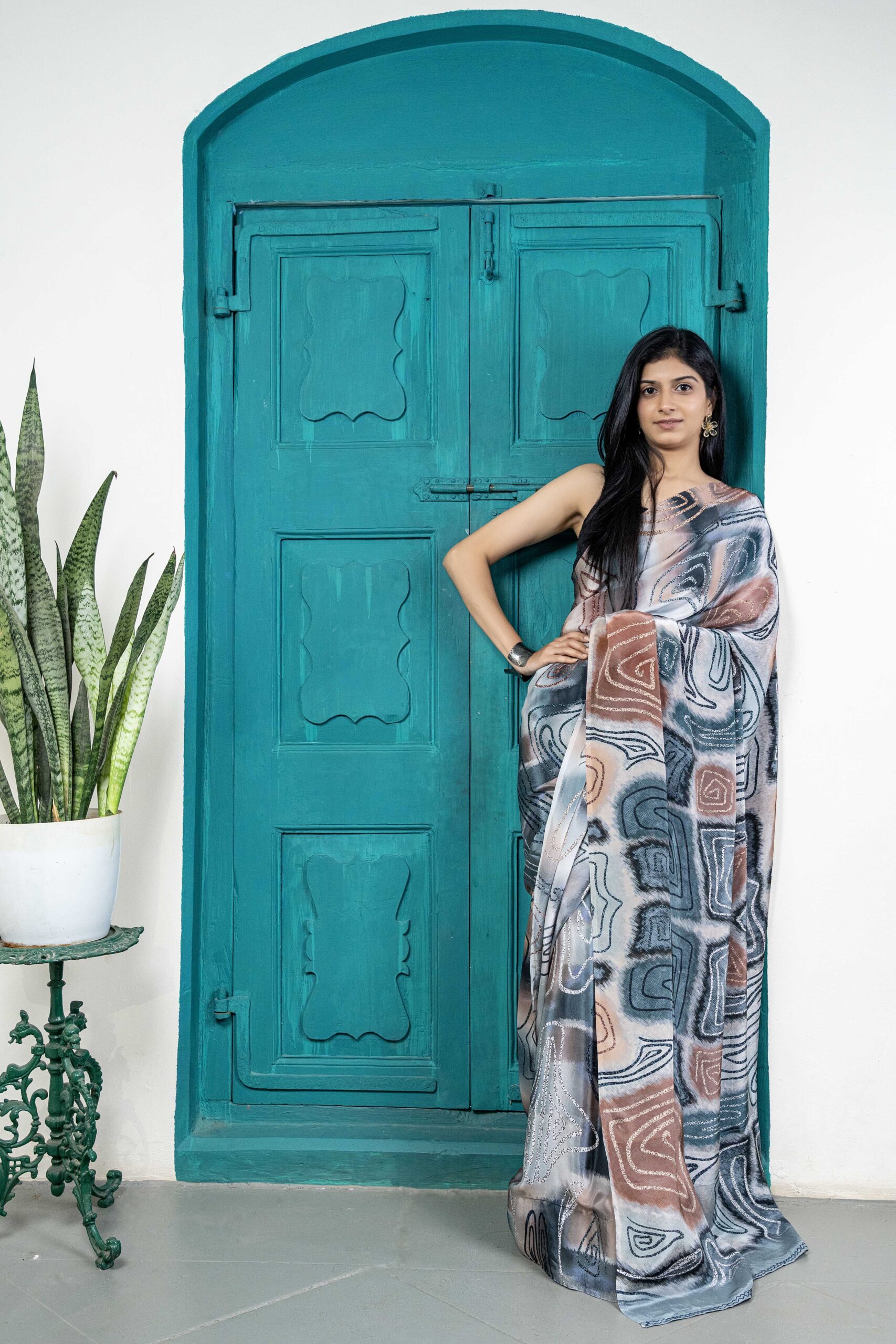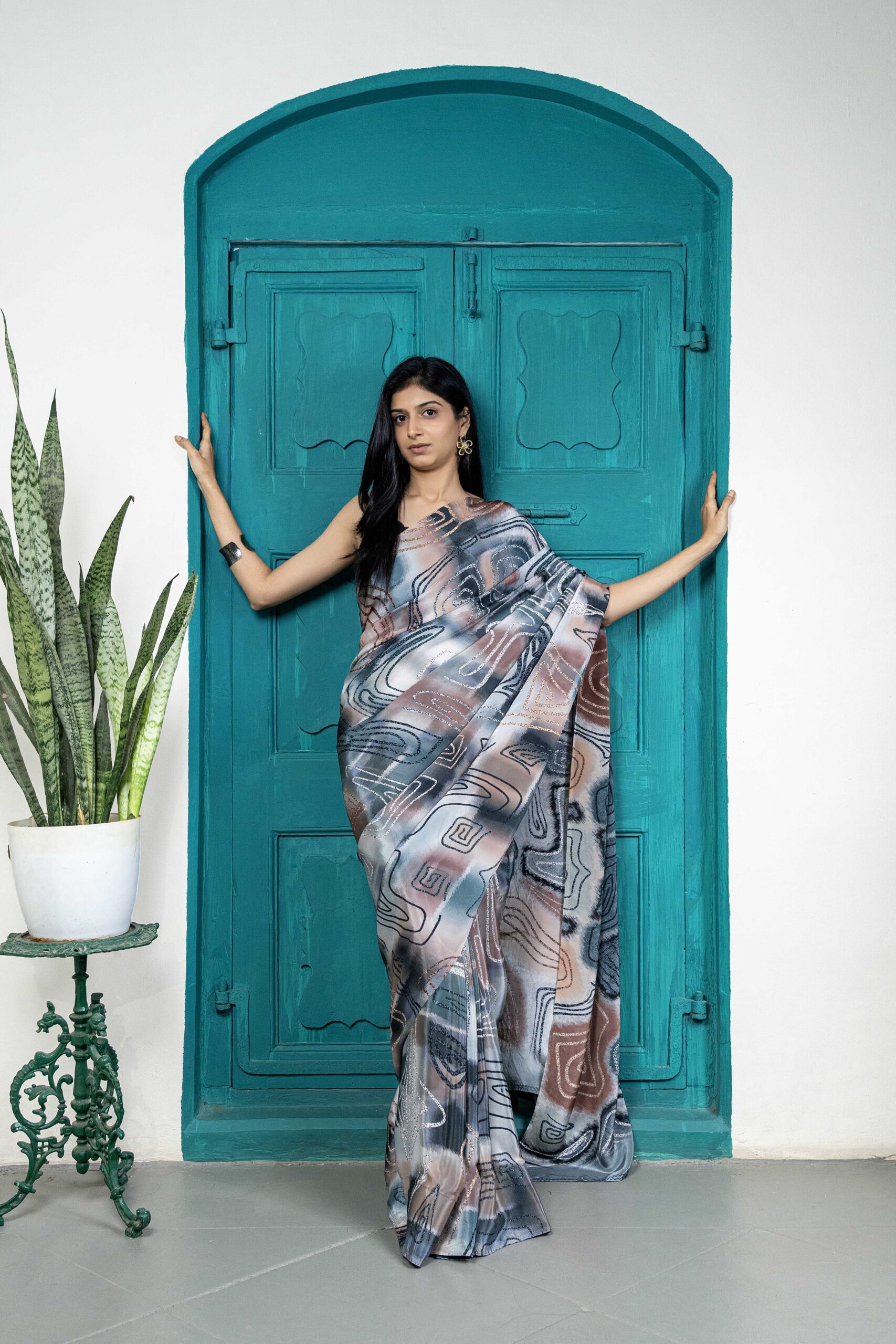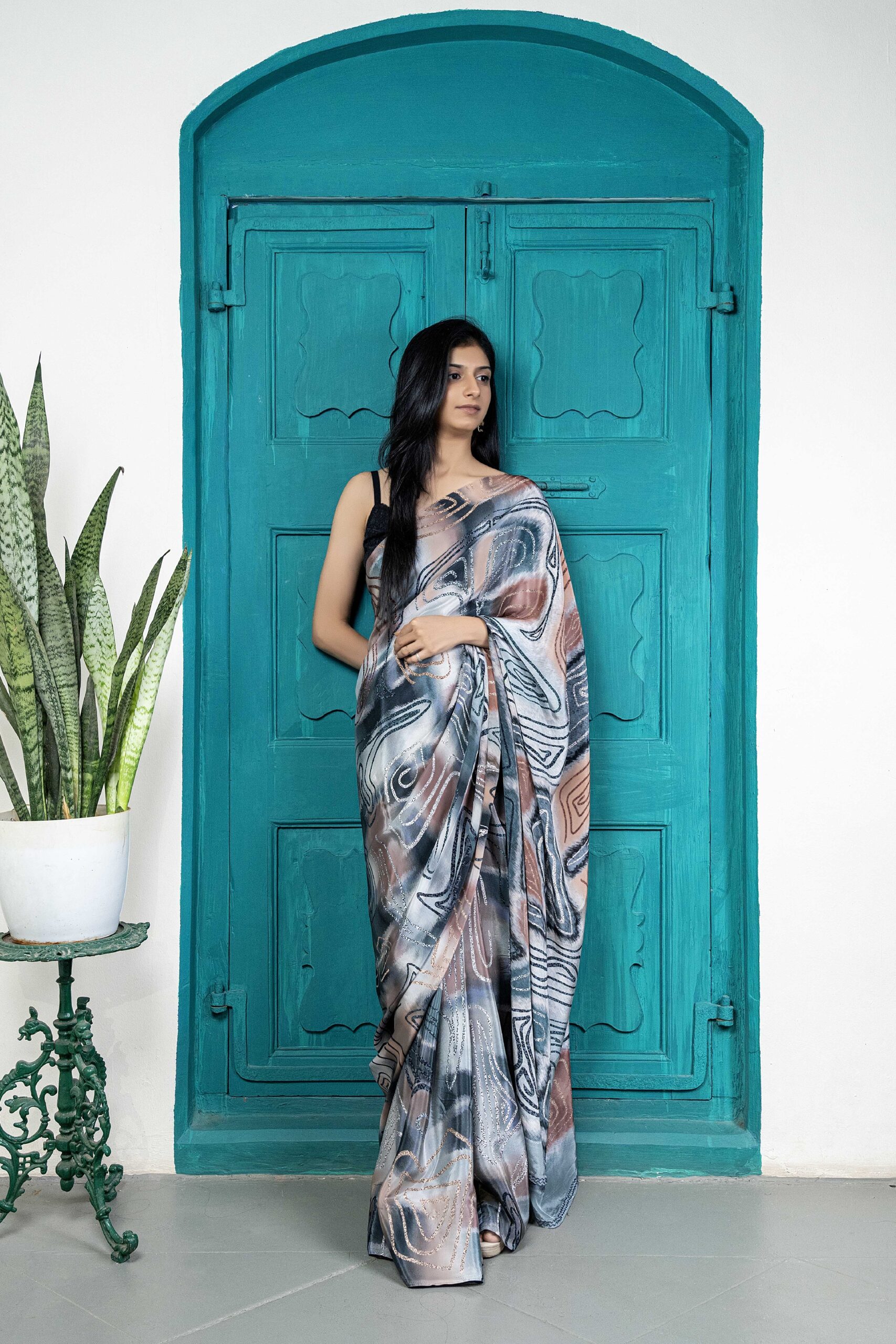 Mono-lume crepe saree