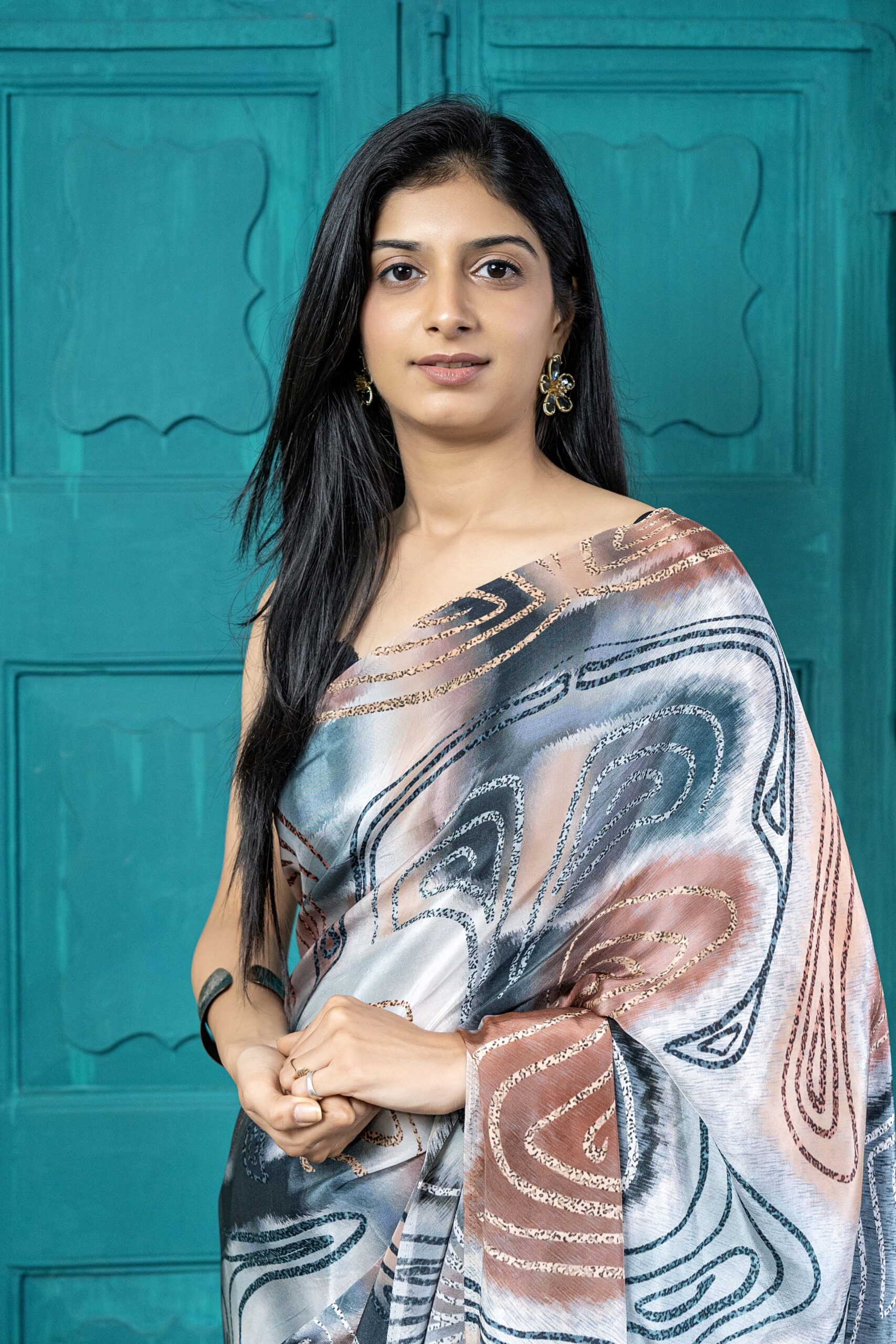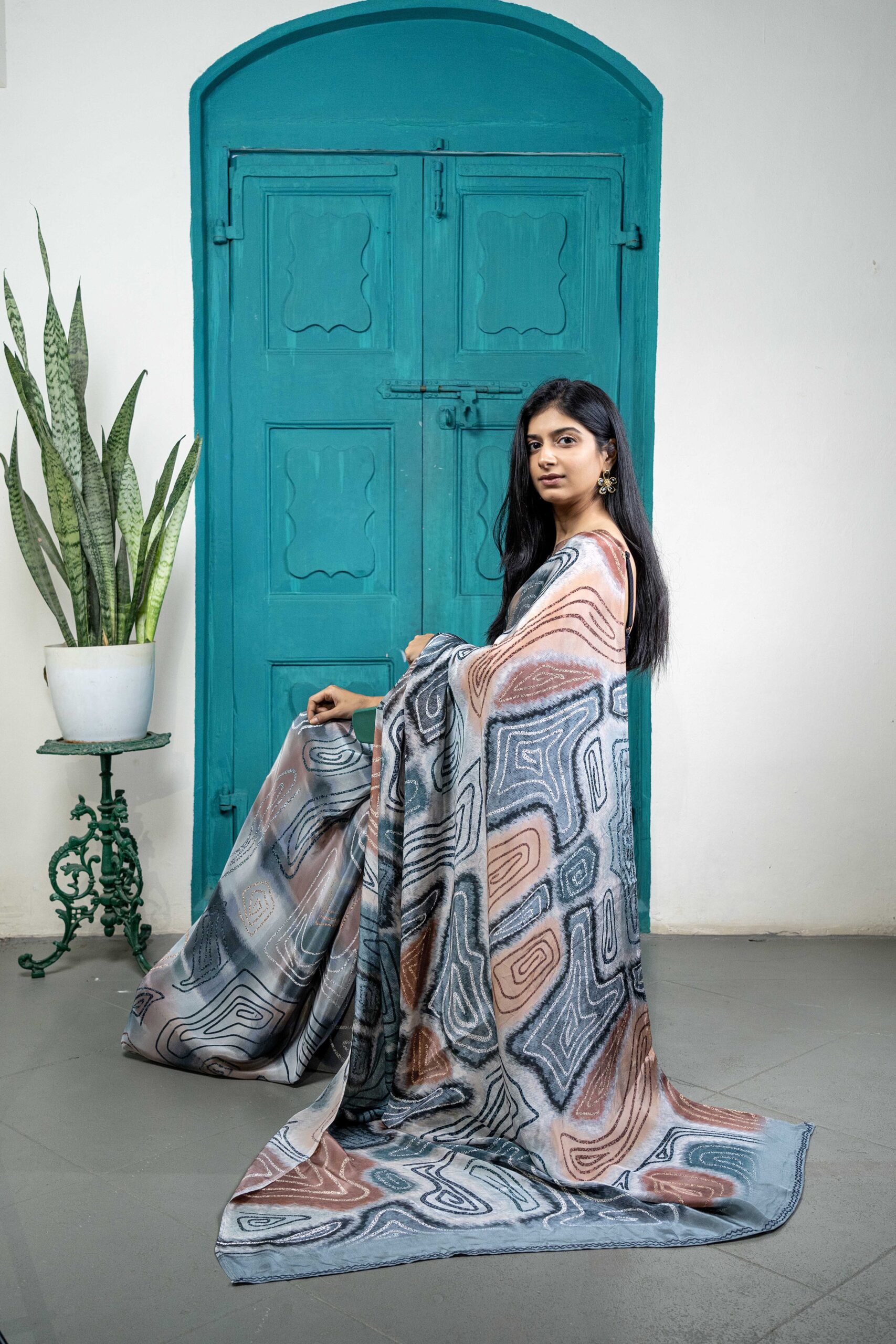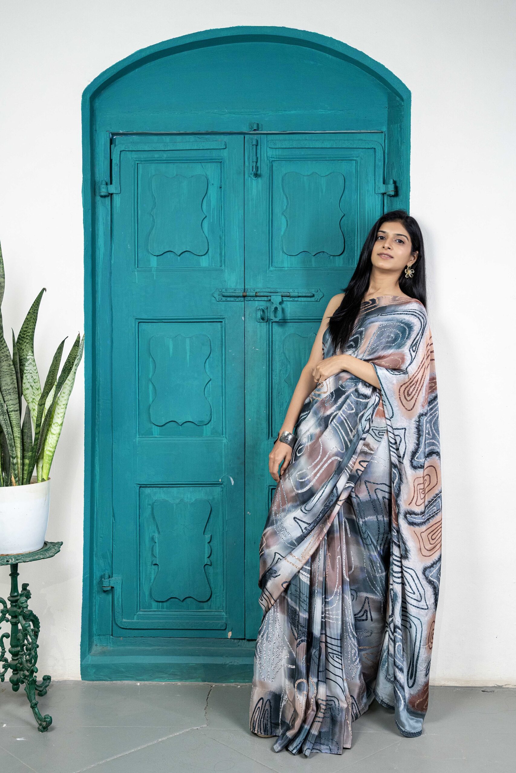 Mono-lume crepe saree